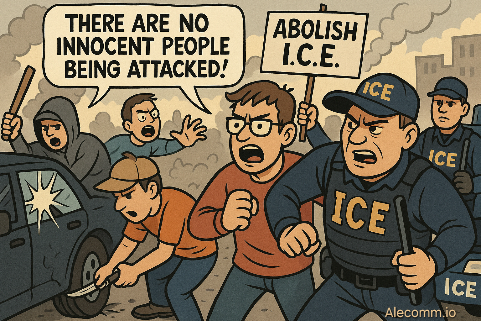 Immigration enforcement officers don’t randomly attack innocent people. That fantasy only survives if you deliberately ignore what actually happens before the camera starts rolling. The people branded as “innocent” somehow always seem to be the same ones getting in officers’ faces, obstructing lawful operations, interfering with investigations, ramming ICE vehicles, smashing windows, slashing tyres, and physically blocking arrests. Funny coincidence, that.