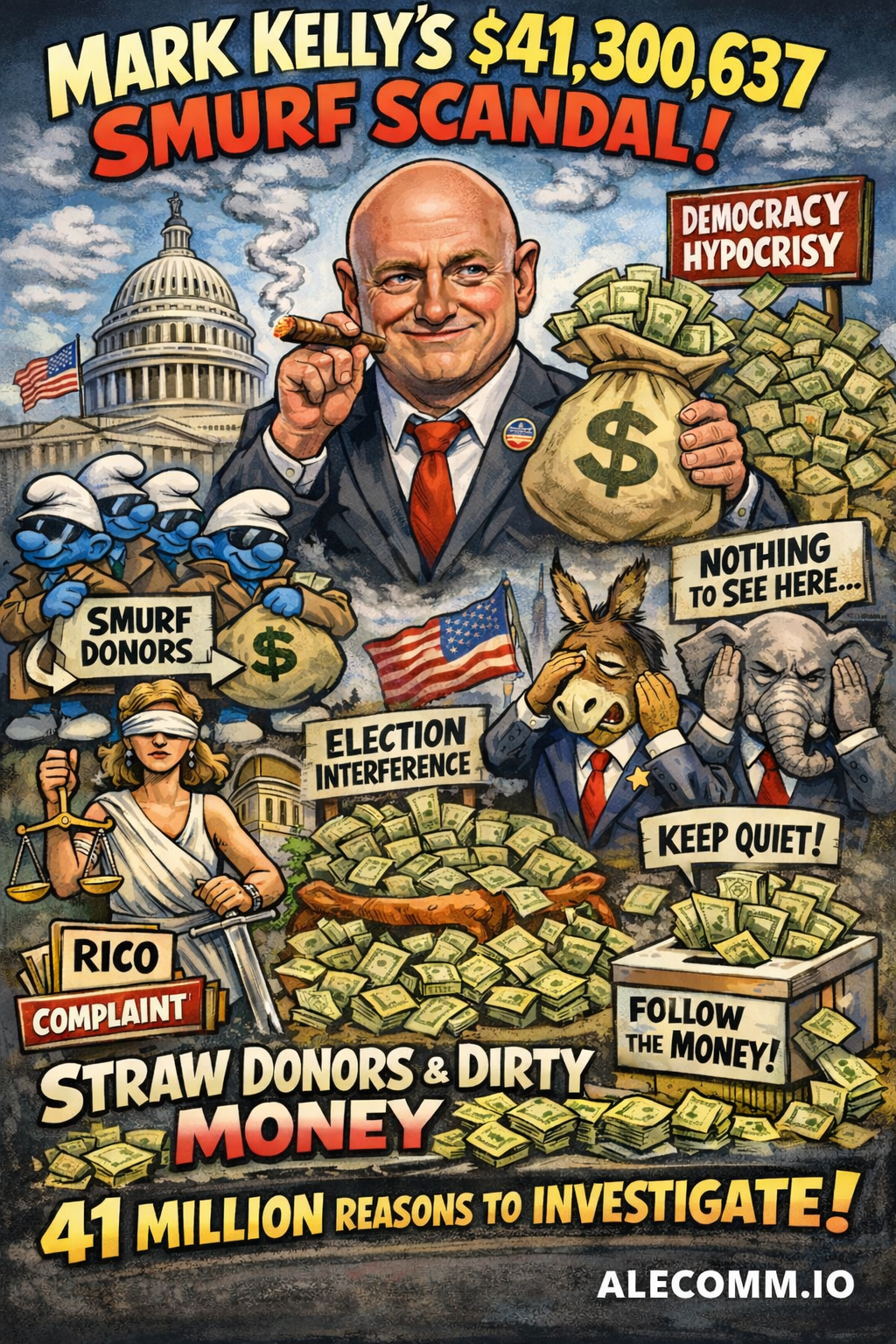 Mark Kelly is sitting under an FEC complaint alleging $41,300,637 in campaign cash moved through smurfs ~ straw donors ~ cut-outs ~ laundering proxies. That number is not a typo. Forty-one million dollars doesn’t “accidentally” wander through a political campaign. It has to be engineered.