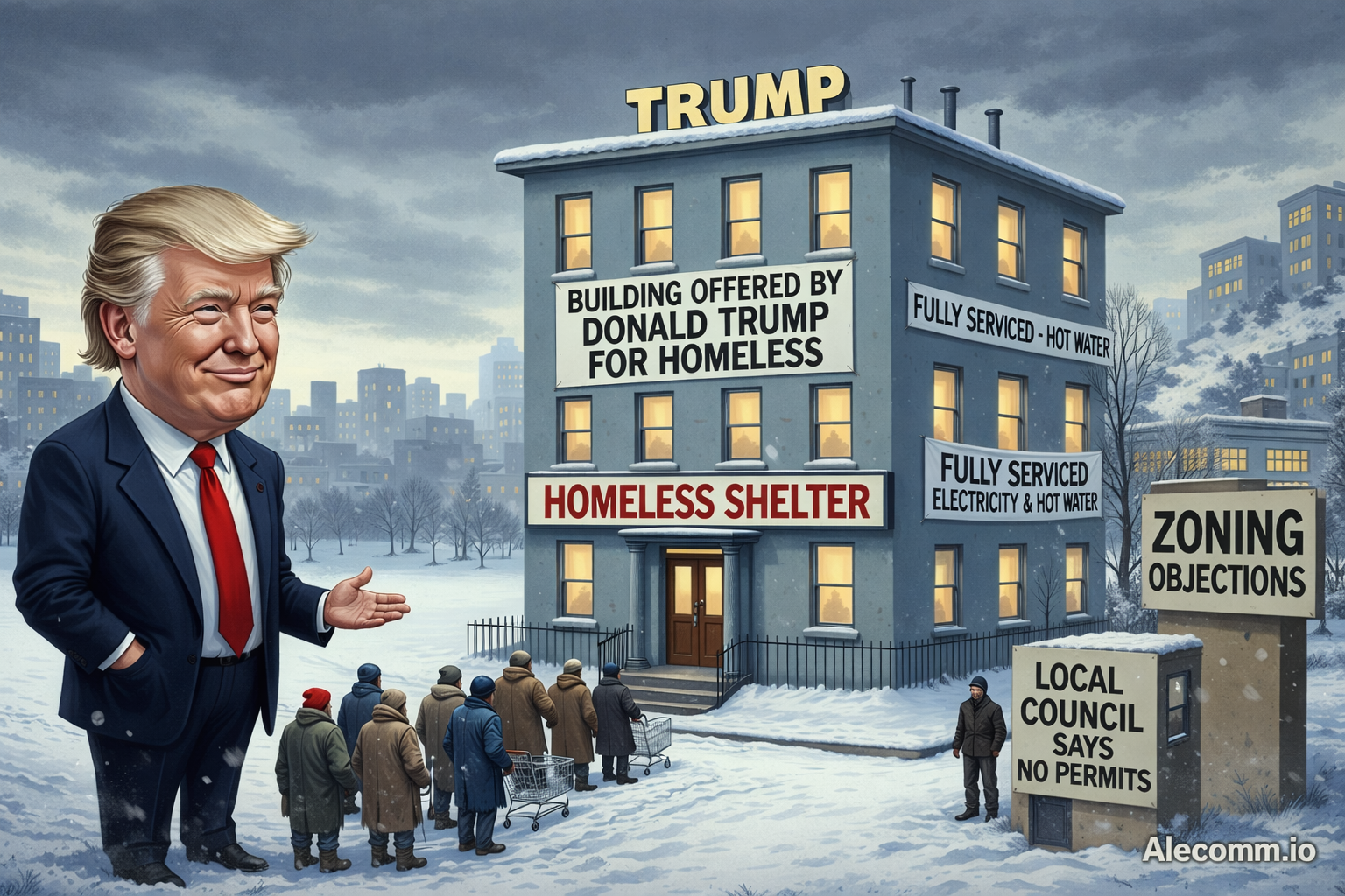 Trump’s position was simple: while the building was eventually slated for renovation, it could be used in the interim to house homeless individuals through the winter months — getting them out of the cold while the property sat otherwise unused.